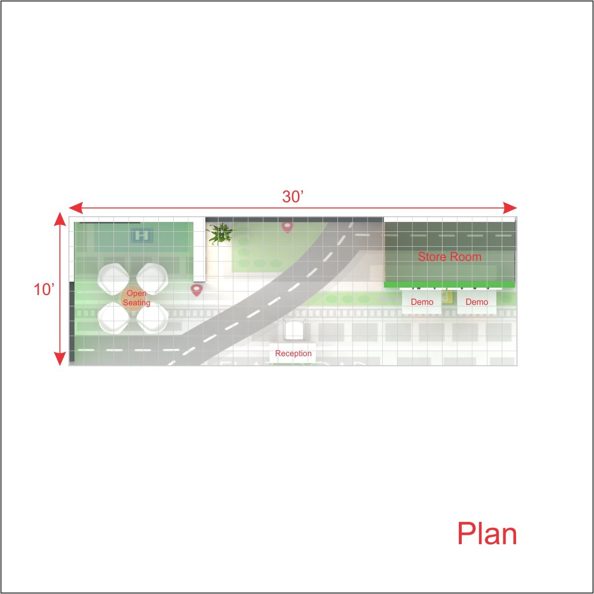 - Rental of all furniture and AV equipment as shown in the visual.