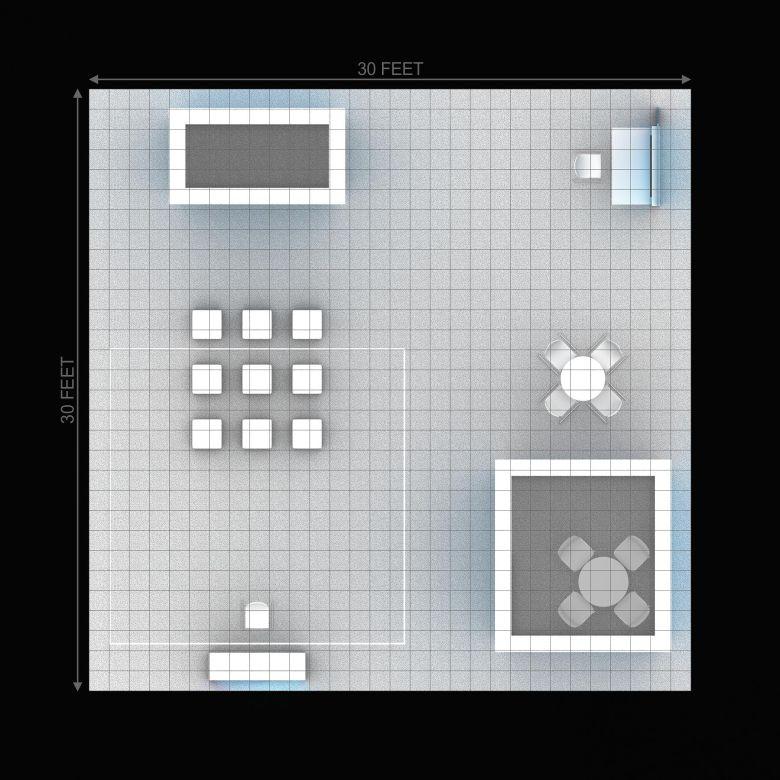 • Rental of complete booth structure and lighting as per the visual.